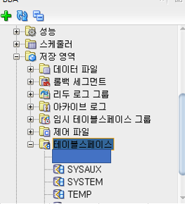 테이블스페이스 -> 우클릭 -> 새로만들기