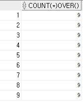 차이점이 보일것이다. OVER()를 쓰게 되면 전체 ROW수만큼 리턴받는다.
