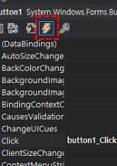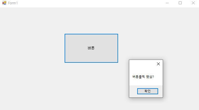 버튼 더블클릭 하거나 아래 그림처럼 속성에서 번개모양(이벤트) 를 클릭하면 Click 이 있을것이다.