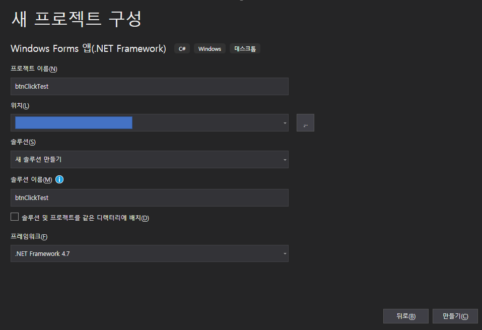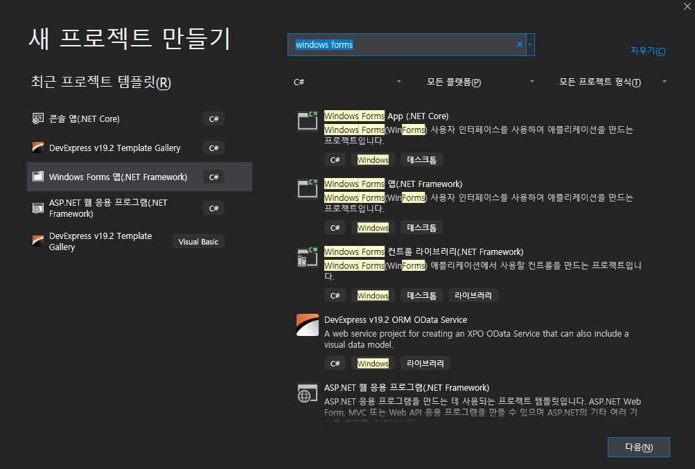 Window Forms 앱(.NET Framework) 를 선택한다.
