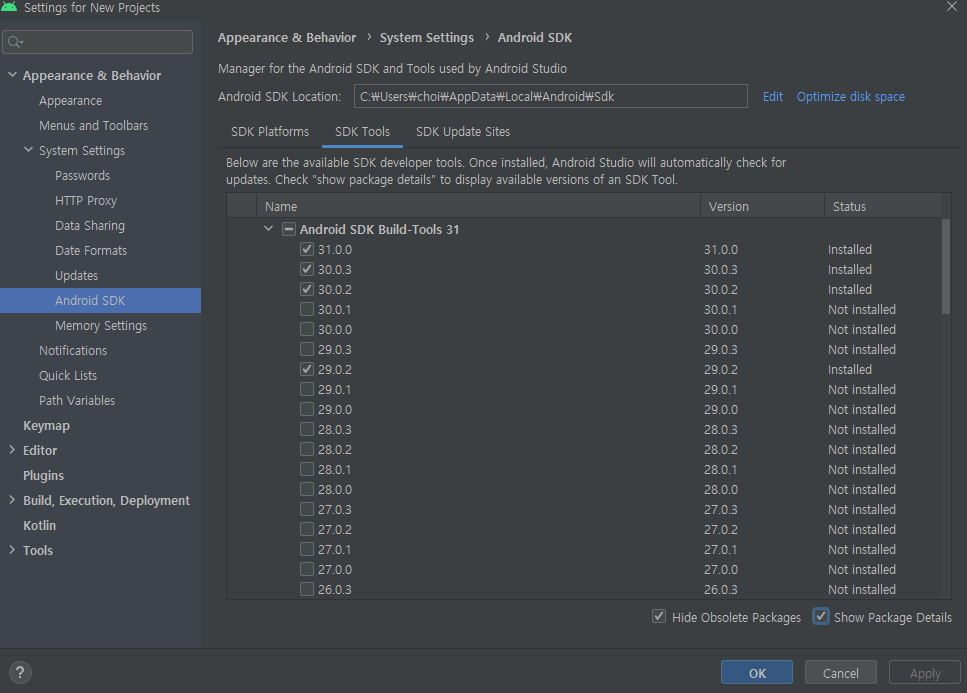 | [Android] Android Studio "Installed Build Tools revision 31.0.0 is corrupted" 오류 해결방법 (0) | 2021.07.19 |