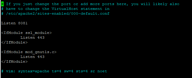 해서 /etc/apache2 밑에 port.conf 파일을 열어본다.
