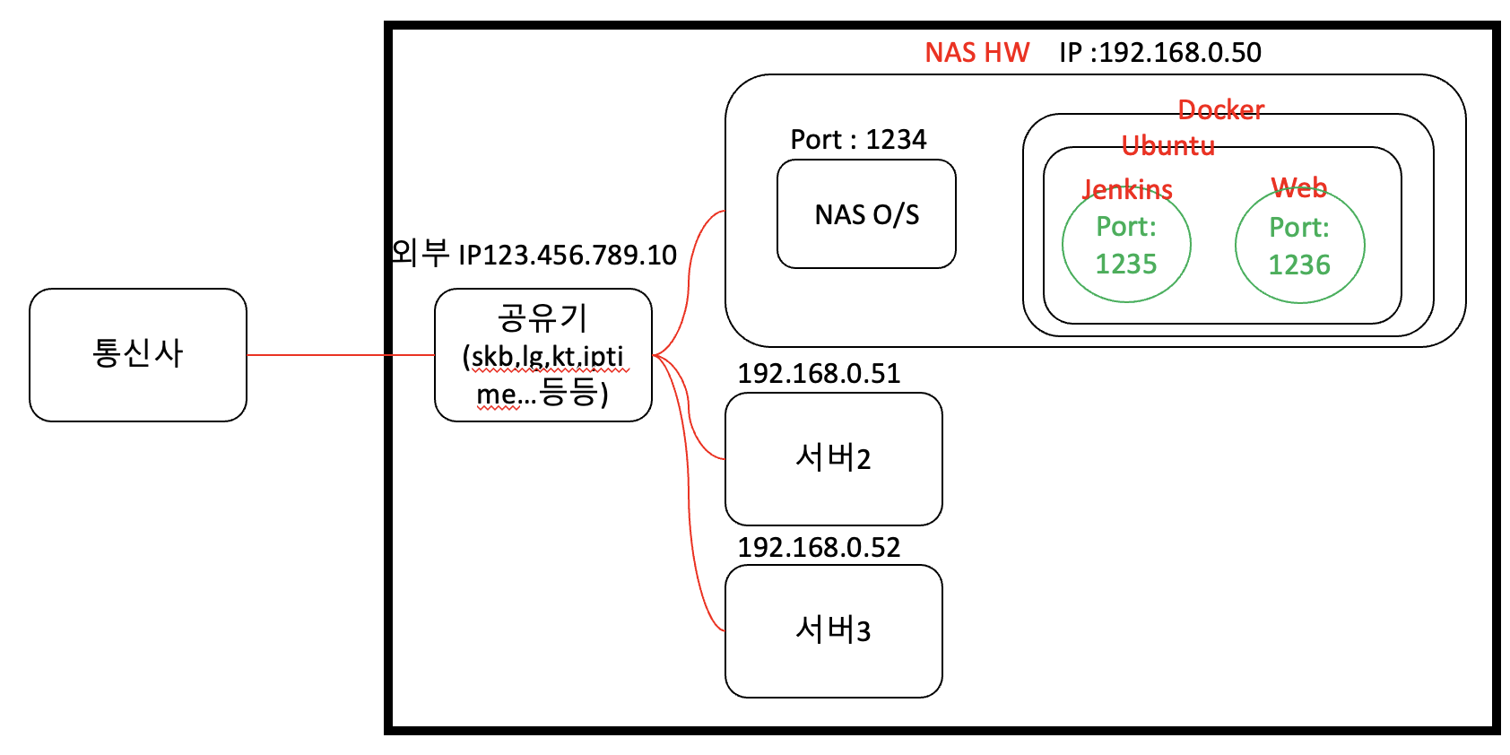 공유기 ----->>>> docker ----->>>> Ubuntu(jenkins, web). 요렇게 날라갈거다.